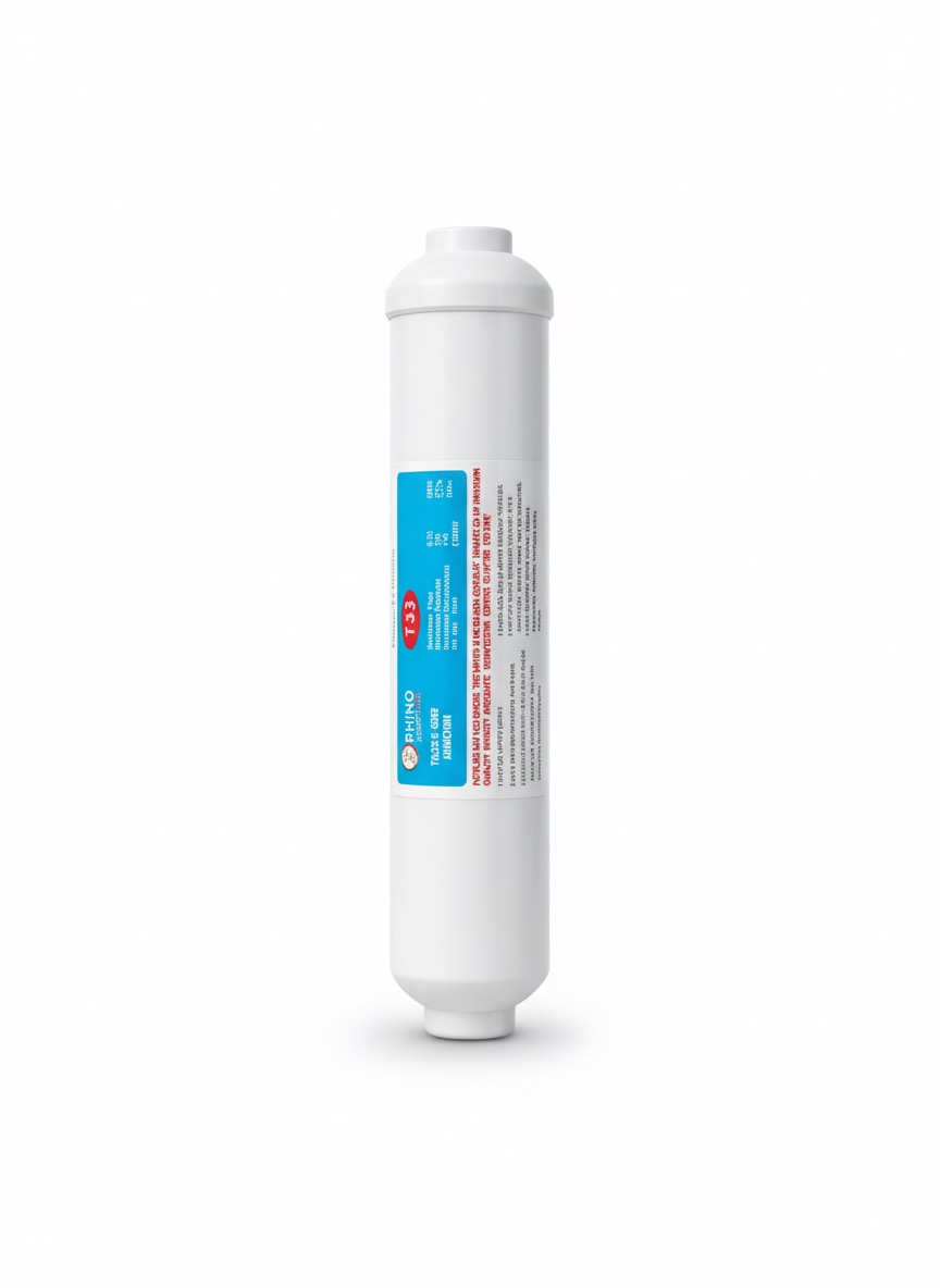 - Le filtre T33 est une cartouche de charbon actif, souvent utilisée comme étape finale dans un système d’osmose inverse, dont la fonction principale est d’éliminer le mauvais goût et les odeurs résiduelles de l’eau purifiée pour la rendre plus agréable à boire
