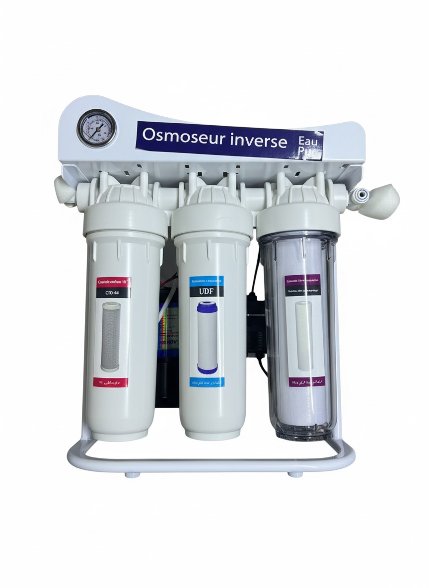 Ce Système de filtration d’eau domestique SANILI à 6 étapes est un purificateur sous évier conçu pour améliorer la qualité de l’eau potable en éliminant les impuretés, le chlore et les sédiments.
