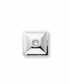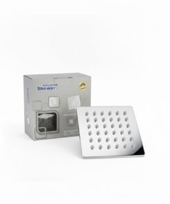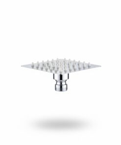 - Ce produit est une petite pomme de douche (ou tête de douche) carrée, en finition chromée brillante, conçue pour un montage fixe au mur ou au plafond.